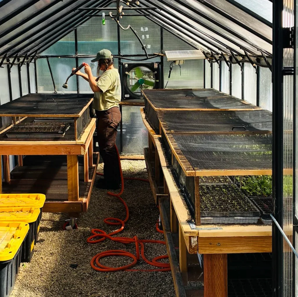 The farm sits on Sulphur Mountain, high enough that your ears pop on the way up the unpromising road, high enough that it snowed once, and Co-founder and Farming Director Alex Hrivnak took pictures. She thought no one would believe her.
