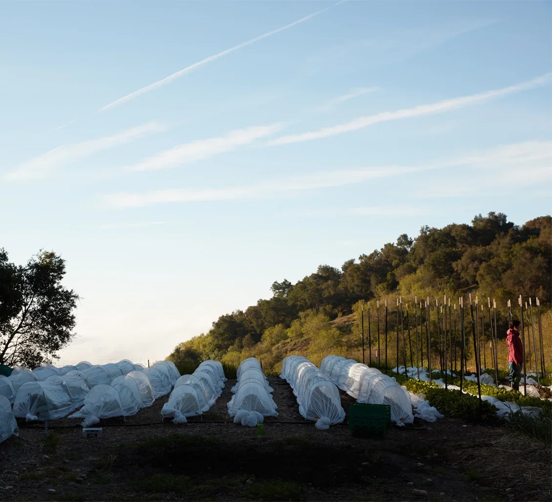 Jayson Holzworth, Culinary Director, came to OMF after nearly five years as Chef de Cuisine at the Ojai Valley Inn’s The Oak Restaurant, hired before there even was a kitchen. He’s been spending the last few years helping out wherever he was needed, including at one point assisting Sergio with building the berry trellis. He spent months before opening in the test kitchen, developing the ferments, planning the dishes, working out what the farm’s harvests could become. He was recommended to Tony by Tal Ronnen, one of the world’s most celebrated vegan chefs. Tony was looking for someone who was, in his words, “crazy passionate.” His test: What do you think about sauces and foams? Holzworth’s answer: If he’s eating a carrot, he wants to taste it. He wants it to be “the best fucking carrot in the world,” Tony told me. He got the job. He is joined in the kitchen by fellow Ojai Valley Inn alum Jonathan Pozos as Chef de Cuisine.