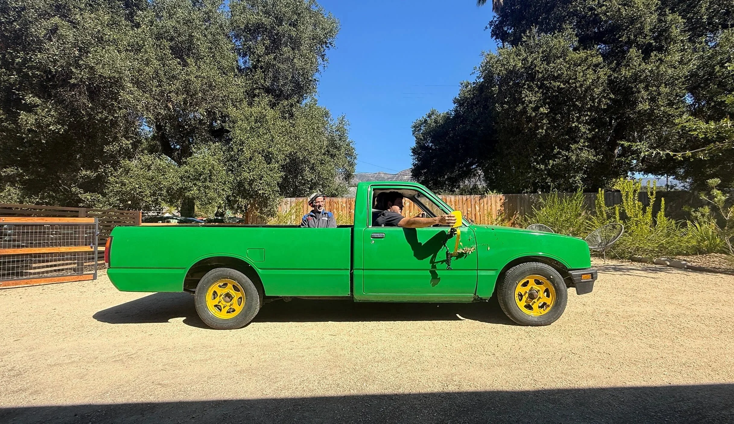 The tailgate reads “WE❤MO,” a loving nod to Meiners Oaks and a wink to Silicon Valley’s Waymo self-driving fleet. But this 1984 Isuzu Pup, hand-painted in bright green with yellow accents, does require a driver — one who’s familiar with a clutch.
